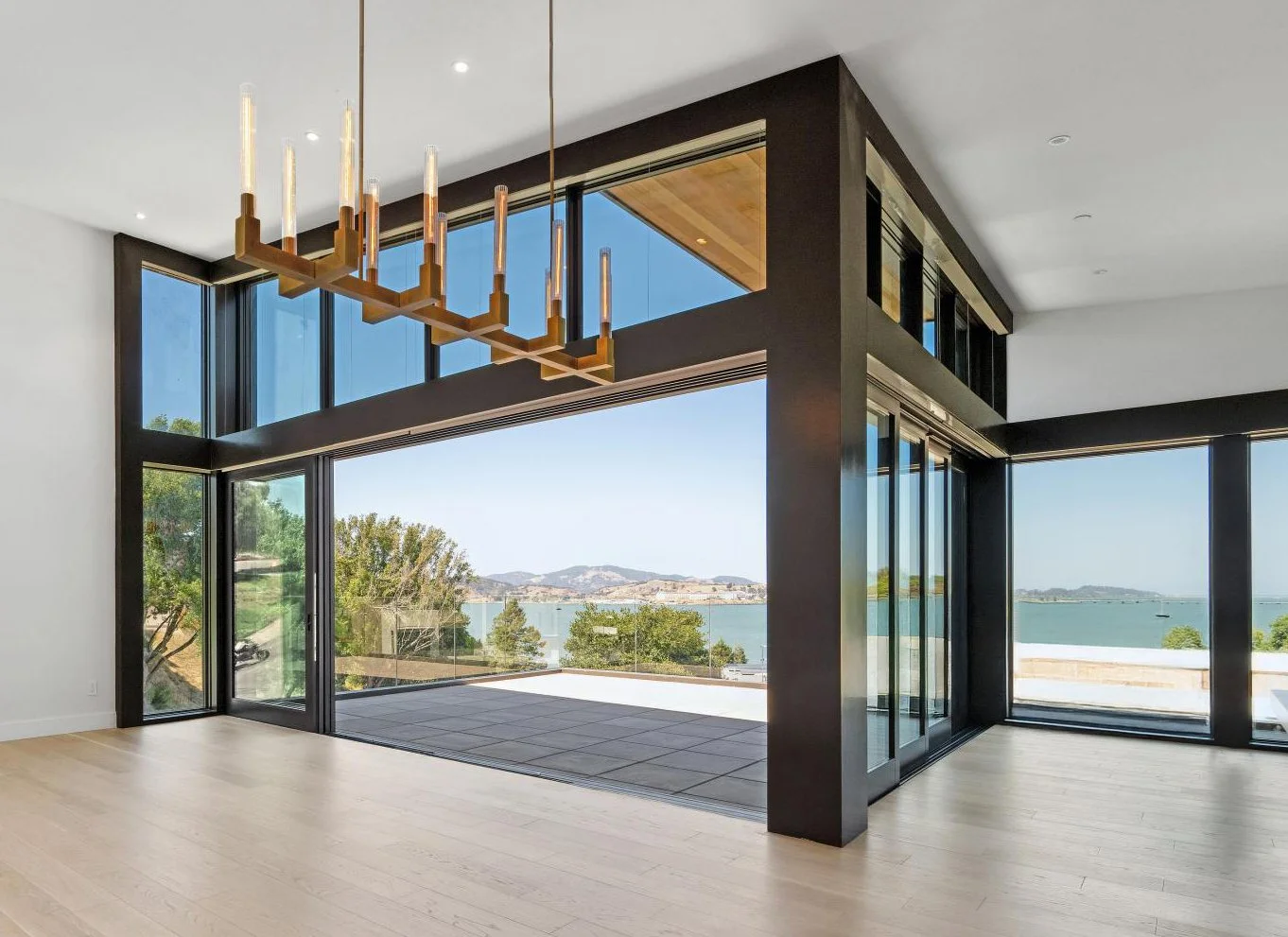 SOARING ABOVE THE BAY  Located in the foothills of the Ring Mountain Preserve, this 5,100 sf home opens to sweeping views of the San Francisco Bay from nearly every room. Thoughtfully composed rooflines and carefully positioned terraces establish a natural sense of flow, while expansive glass openings frame the surrounding landscape and bring the outdoors into daily life.